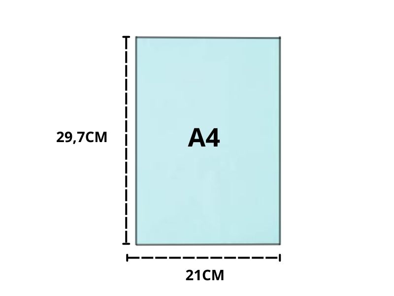 Formato A4 azul (210 x 297 mm);