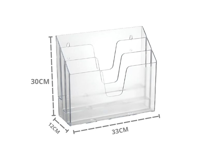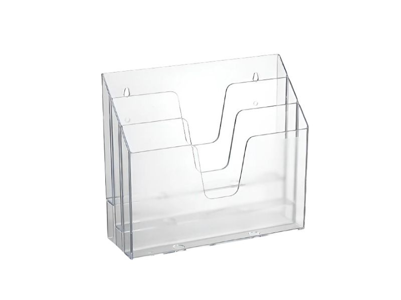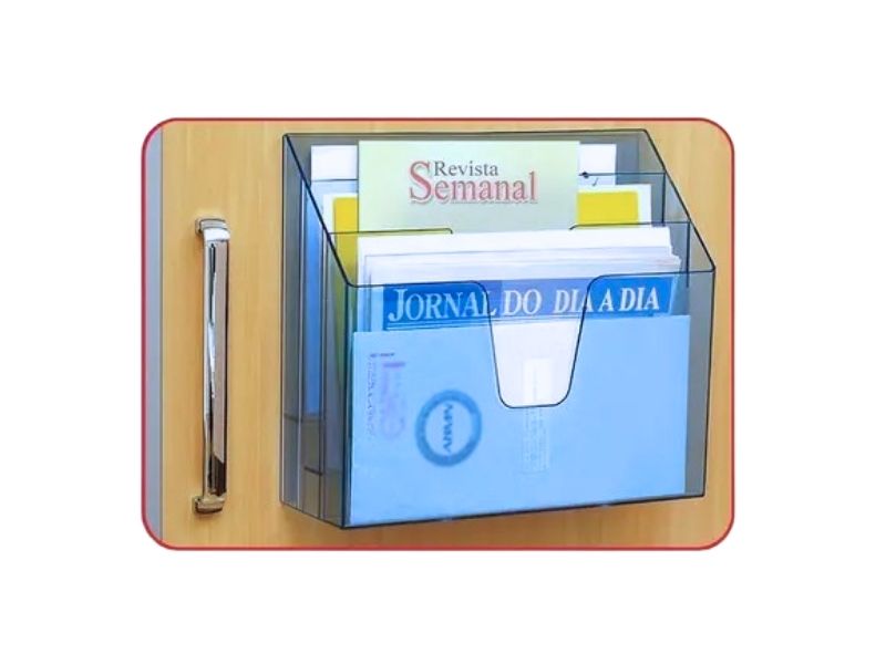 Organizador fabricado em poliestireno. Alta qualidade, resistência e durabilidade. Ideal para expor catálogos, folhetos, revistas etc. Perfeito para empresas, hotéis, hospitais, agências de turismo, restaurantes etc.