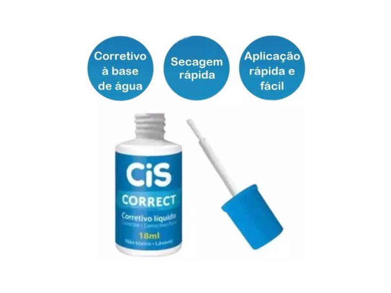 O Corretivo liquido CisCorrect 18ml é um produto de alta qualidade da marca CiS, reconhecida pela sua excelência em materiais de escritório e escolar. Ideal para correção de detalhes de escrita, desenhos e impressões. O Corretivo Correct é fácil de aplicar, não possui cheiro e pode ser utilizada por adultos e crianças (acima de 3 anos) por ser um produto não toxico. Possui forma anatômico para uso de destros e canhotos.
